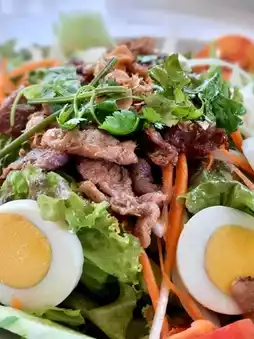 When you step into the shop, you will feel the warm and friendly atmosphere👫 with a beautiful view of the Mekong River that stretches as far as the eye can see. 🖼️The interior of the shop is decorated in a style that combines simplicity and vintage vibes. 🏛️There are both indoor and outdoor seating areas. 🪑🛋️Suitable for relaxing or socializing with friends. The menu focuses on fusion Isan food. Including a variety of homemade drinks and desserts 🍝🍹