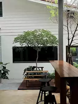 The shop is located behind Mukdahan School and is easy to find. It's open from morning until evening. The atmosphere is warm and inviting, with a wood and white tone, and small trees all around. It feels like a friend's home. There's both an air-conditioned indoor area and a breezy outdoor area. If you come early, the light is beautiful, and the photos feel like you're in a Chiang Mai cafe.💸