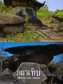 Phu Pha Thoep is a collection of unusual natural rock formations resembling giant mushrooms or flying saucers. It's a must-see photo spot for nature lovers. There's also a short hiking trail for fresh air. 🍃
