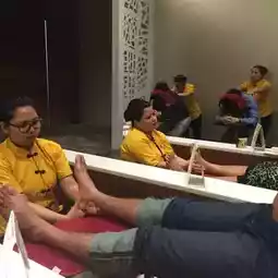 One of the best lounges in the world. The airport has several lounges and is one of the best, there are a lot of armchairs to rest, pleasant and good lighting, a luxurious atmosphere, there is a lot of food and drink of high quality and a lot of options for vegetarian. The staff knows to provide excellent service, there is also a spa and get a 15 minutes massage. You should book at the time of entry so there will be no rush.