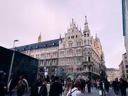 Strolling around Marienplatz in the heart of Munich is an experience filled with authentic European charm. Surrounded by ancient architecture, it combines mysticism and beauty. The majestic New Town Hall, with its Glockenspiel clock tower, is especially captivating. Every step is filled with life, with tourists taking photos, vendors selling local products, and street music creating a warm atmosphere. I strolled slowly, absorbing the liveliness of the square, stopping at an outdoor cafe to watch people pass by. This truly captivating view of Munich's lifestyle and charm is a true showcase of the city's charm and traditions. For those looking for a bit of shopping, there are numerous brand-name stores on offer.