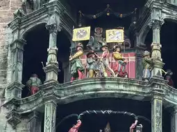 The entire Glockenspiel performance lasts about 12 minutes and is divided into two acts, reenacting two historical scenes from 16th-century Munich: