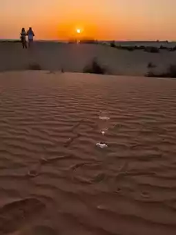 And the highlight of this time was the sunset camel tour! 🐫 The sight of the sunset painting the sand dunes orange while swaying on a camel through the desert is breathtaking. The guide carefully explained how to handle camels and the history of the desert, making it a deep experience that goes beyond just sightseeing. At the end of the tour, we enjoyed the sunset while drinking champagne and dates in the middle of the desert. It was like a scene from a movie! 📸