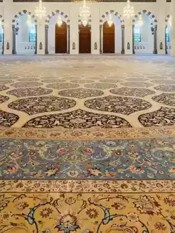 This carpet covers the entire Main Prayer Hall, measuring over 70 x 60 meters. It is the largest handwoven carpet from Iran in the world.