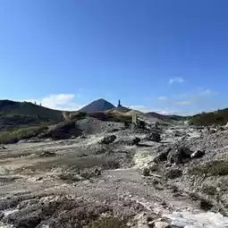 The weather was amazing, and the temple was surprisingly well-maintained. Even though the scenery was bleak with stonework everywhere that smelled of sulfur, the mountains behind were beautiful with autumn leaves🍁, so it didn't feel ominous😊