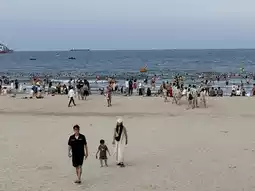 When the sun began its descent, we made our way back to the beach. By now, the once-quiet shore had transformed into a lively scene. The golden hour bathed everything in a warm, amber light, and the beach was alive with people—both locals and tourists—enjoying the cooler evening air. Families gathered, children splashed in the shallows, and laughter filled the air as everyone took to the water for a refreshing swim.