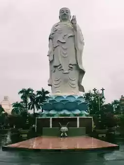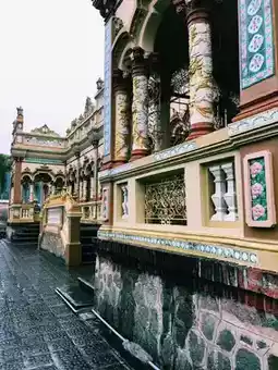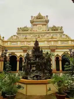 Stepping into Vinh Trang Pagoda feels like entering a peaceful sanctuary. Towering Buddha statues stand against the sky, while intricate carvings and golden details adorn the temple walls. The scent of incense drifts through the air as monks chant softly in the background. Beneath the swaying palm trees, koi fish glide through tranquil ponds, adding to the temple’s calm aura. A moment of serenity amidst Vietnam’s vibrant energy.