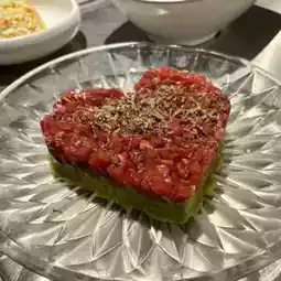 Yukke tossed in a special sauce is served on top of pear and avocado, and then luxuriously drizzled with truffle sauce. The sweet pear and creamy avocado are exquisitely intertwined, and the aroma of truffles is enhanced, making for a luxurious and satisfying meal.