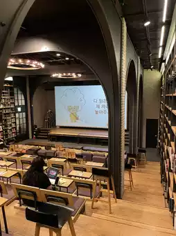 Tucked away in a corner of the movie theater, this is more than just a café; it's a small cultural space where movies and books come together. Filled with books ranging from film-related books to art, design, and humanities, it's a delight to browse. Sitting down, sipping tea, and flipping through the pages creates a tranquil moment, a world away from the hustle and bustle of Myeongdong.