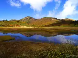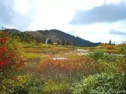 At an elevation of about 2,100m on Mount Hiuchi, there is the high-altitude marshland "Koyaike." The fresh greenery is beautiful, but the colorful autumn scenery is like a painting.