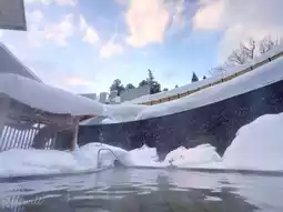 The hotel's restaurant was buffet style, and the large bath was a hot spring open-air bath with a snow view! It was lit up at night, creating a fantastic snow-viewing corridor.