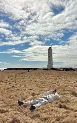 ■ Pro outfit tip: Bright scarf instantly becomes glacier focal point