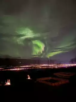 When the KP index (aurora strength) rises at night, the driver immediately takes you to clear sky areas;