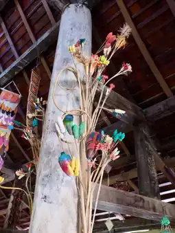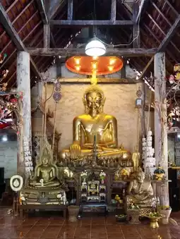 * Ancient Sim and Murals: The temple boasts an ancient wooden Sim (church) that remains intact. Inside, beautiful murals depict the life of the Buddha, crafted by local craftsmen.