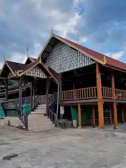 The main Buddha image, Luang Pho Yai, is enshrined within the Sim, a Lan Xang-style Buddha image in the Mara-Vijaya posture, revered by the locals for a long time.