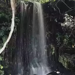 * There is a parking lot and a water and snack shop before the entrance to the waterfall.