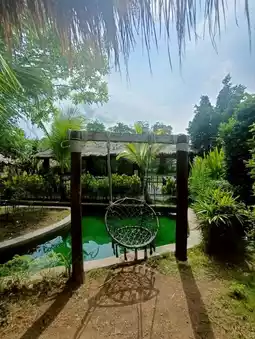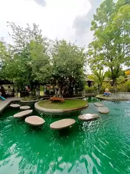 A cafe and restaurant with a nice atmosphere, rice field view, sip coffee and rice fields, and experience the nature of the green rice fields. The shop is spacious, with many seating areas to choose from, both rice field view and beautiful blue ponds. It is a private hut, suitable for families or to chill with friends. There is a long bridge down to the rice fields for you to walk beautifully. It is another cafe with beautiful photo corners with nature, like you are really relaxing.