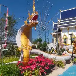 Visit this beautiful, small temple in Nong Bua Lamphu: Wat Prasan Sattha. The shady interior and grand ordination hall are impressive. The entrance features a large five-headed Naga on both sides, extending all the way to the ordination hall. It's also decorated with flowers and plants, and has plenty of greenery. This temple is a symbol of Kao Kloi and the surrounding area.