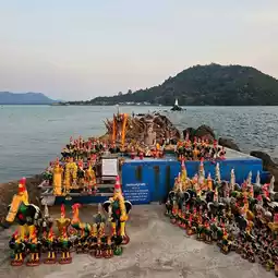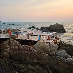 The Chedi Klang Nam Viewpoint, Ban Hua Laem, is the location of the pier of an old coastal fishing village. It is located in Ban Hua Laem, at the tip of Ao Khung Kraben Cape. Tourists can see the unique local lifestyle of this fishing village. And because it is located at the tip of the bay, it is quite convenient to go fishing. The viewpoint is near the fishing pier of Ban Hua Laem, with a convenient bridge down to the sea. The highlight here is the old white chedi located on a rock in the middle of the sea. The villagers say that this chedi is about 200 years old. It is said that it was built to be a spiritual anchor for fishermen in this area, to make their business and fishing better. The recommended time to come is in the evening, around 5:00 p.m. - 6:30 p.m., to watch the sunset in the evening. There is a very beautiful sea view.