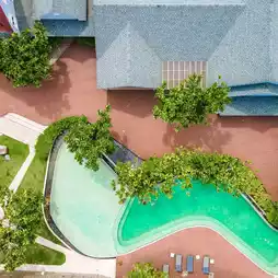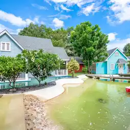 The pool is just the right size, under the shade of trees, so you can swim without getting hot.