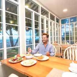 A small and cute cafe with a highlight corner of the lighthouse for taking cool photos.