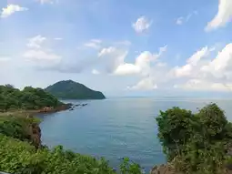 When visiting Chanthaburi, don't miss the chance to admire the beauty of Thailand's longest coastal road, stretching 111 kilometers. The viewpoint at Noen Nangphaya is located on a hill by the sea, near Khung Wiman Beach and the estuary of Khung Kraben. This coastal road runs through Chanthaburi, from the northernmost to the southernmost seaside of the province. On the left, you'll see the deep blue sea reflecting sunlight, while on the right, the road is flanked by mountains and the ocean. It's recommended to visit in the early morning or late afternoon when the weather is cooler. Around the area, you'll find shops, cafes, and stalls offering food and souvenirs to enjoy or take home.