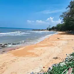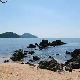 🌊 Another must-see landmark in Chanthaburi Province is Hin Krong Viewpoint, located in Sanam Chai Subdistrict, Na Yai Am District, Chanthaburi Province. This viewpoint is located north of Khung Wiman Beach. Most visitors to Khung Wiman head to the Noen Nang Phaya Viewpoint, which is located on the opposite side of Hin Krong Viewpoint, as it's a different turn. 😄😄 The atmosphere here is wonderful, with a cool breeze, a sandy beach, and beautiful rock formations. It's relatively quiet on weekdays, with fewer people, as most tourists come in the evening to watch the sunset. 🌥️ There's a large parking lot here, making it a popular spot for resting or for easy access to small boats. There are also vendors, though not many. On weekdays, there are hardly any vendors. 😄😆 Therefore, this is another beautiful viewpoint. If you visit, we highly recommend that you experience the peaceful atmosphere, listening to the crashing waves and the sounds of nature at least once in your life. You won't be disappointed! 🥰👍🏻
