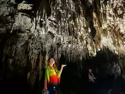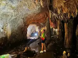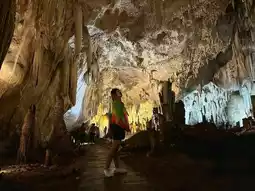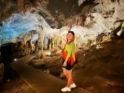 This is one of the easiest caves to visit because it only takes a few steps to climb. And here, there are lights to guide tourists to explore by themselves, it's not scary. Walk along to see many beautiful stalactites and stalagmites. You can go in with the staff in rounds. The staff will tell you the details of the various points inside the cave. It's really sparkling and beautiful.