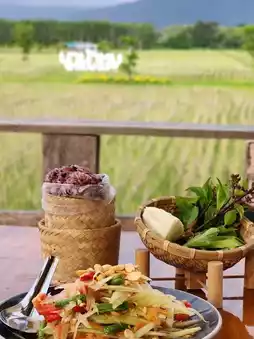 A restaurant with a nice atmosphere, a million-dollar rice field view, delicious food that is not expensive