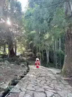 I walked up the Daimonzaka slope of the Kumano Kodo to the World Heritage site of Kumano Nachi Taisha Shrine wearing a Heian period costume.