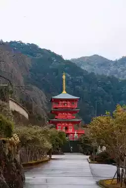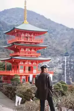 The bright red buildings of Kumano Nachi Taisha Shrine on the mountain are particularly eye-catching and photogenic. The nearby Seiganto-ji Temple also has a unique charm, quiet and solemn. And the three-storied pagoda looks great in every photo. Although Nachi Falls is less imposing during the dry season, it is still beautiful, especially when framed with the three-storied pagoda, each enhancing the other's charm.