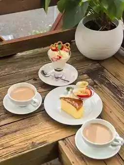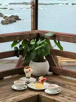 The café offers a great view, though it's a bit pricey. The food is decent, but the atmosphere is the main draw. There's also a foot bath nearby—I really love how these foot baths are everywhere here. So nice!
