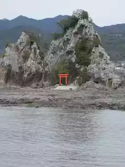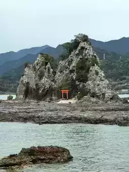 A small hotspot in Katsuura, this is essentially a torii gate standing in the middle of the sea. It seems you can walk to the island during low tide (but don't attempt it lightly~).