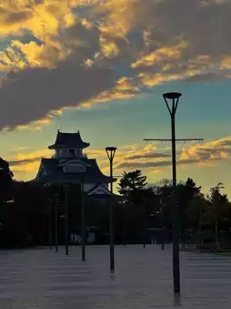 At dusk, as you step out of Nagahama Station, you'll spot Nagahama Castle. Head to the park behind the castle to witness the breathtaking 🌅 sunset scene.