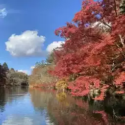 In autumn, the trees around Kumoba Pond turn beautiful colors 🍁