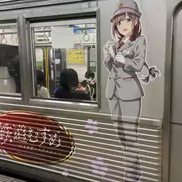 The train is of traditional and old design, but there are pictures of anime girls on the body of the train.