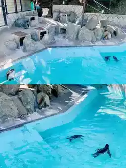 There are many different animals in the park, such as sea lions, penguins, flamingos, and monkeys 🐒