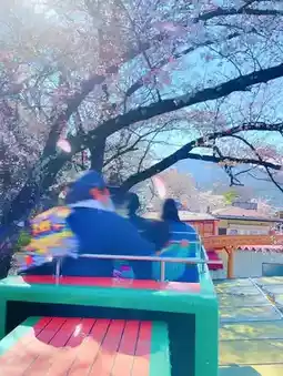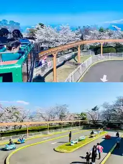 There is also a small amusement park 💓 There are merry-go-rounds and battery cars ✨ You buy tickets for each ride at a ticket machine! And it's cheap at only 300 yen for adults 😳 Since we were there, we also rode the monorail! It goes around twice and goes through a tunnel of cherry blossoms, which was really nice🌸