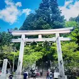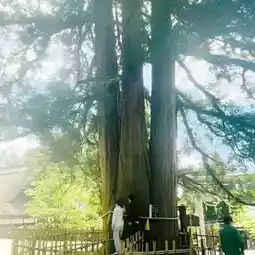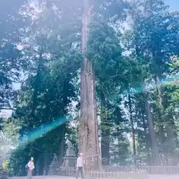The first one is on the right side after passing through the shrine's torii gate and climbing the stairs. It is a magnificent cedar made up of three large cedars🌲It was so big and impressive!
