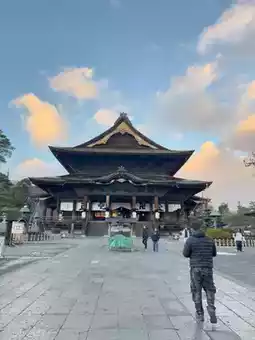 Outside, the temple grounds offer a perfect blend of history and seasonal beauty. Whether it's cherry blossoms in spring, lush greenery in summer, fiery foliage in autumn, or a blanket of snow in winter, Zenkoji remains breathtaking year-round. Strolling through the bustling Nakamise Street, enjoying local specialties like oyaki (steamed dumplings) and warm soba, completes the experience.