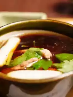 The soup is made with brewed soy sauce, Hokkaido Rishiri kelp, and domestically sourced coarse kelp.