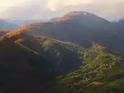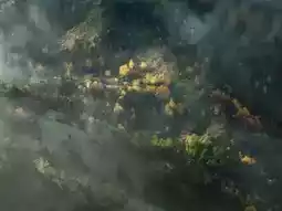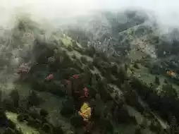 The sight of colorful autumn leaves shining in the large valley is breathtakingly beautiful.