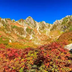 There are 18 Komagatake in Japan. Two of them, Kai Komagatake and Kiso Komagatake, are located in the Japanese Alps. They are located in the east and west of the mountain. Kiso Komagatake, located in the west, is relatively close to the public. There is a cable car station from Shirahidaira Station at the foot of the mountain to Senjoshiki Station, the highest cable car station in Japan. The view of the Senjoshiki Valley at the top of the mountain is 10,000 meters high. Formed 5,000 years ago by glacial erosion, the valley is surrounded by mountains on three sides and the peaks are within easy reach. The valley nourishes up to 150 species of alpine plants. In autumn, the maple leaves adorn the mountains, making the scenery of Kiso-Koma-dake even more spectacular. The 40-minute walking trail allows you to easily capture the maple leaves in the valley. Of course, you can also choose to climb to the top to overlook the magnificent maple scenery formed by the continuous peaks.