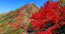 Looking far away from the Red Leaf Valley, you can see Yahiko Mountain in the distance. Yahiko Mountain is a famous volcano on the side of the Japan Sea in the Echigo Plain. The entire mountain is surrounded by the sea and the plain, with magnificent scenery. In the red leaf season, the red leaves on the top of the mountain and the red leaf valley under the mountain are interesting, forming a beautiful picture.