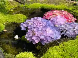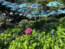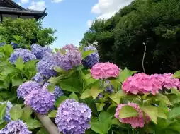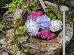 When it comes to hydrangeas, the first place that comes to mind is Nara's Yōkō-ji Temple. Known for its hydrangea handwashing basin, iconic hydrangea staircase, and flower umbrellas, the temple offers picturesque spots for visitors to take photos. However, it's worth noting that the hydrangea staircase is essentially a display of potted hydrangeas arranged along the steps, rather than a vast sea of flowers as one might imagine. It is said that the floral handwashing basin at Yanagidani Kannon is the origin of floral handwashing basins at temples and shrines across Japan.