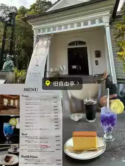 3️⃣💗💗💗The third Heart Stone is hidden on the way down from the old Jiyutei to the old Glover House. The old Jiyutei is a cafe set up on the former site of Jiyutei, the first Western restaurant run by a Japanese chef. We had the popular hydrangea jelly soda and the recommended Dutch iced coffee & Nagasaki castella set.