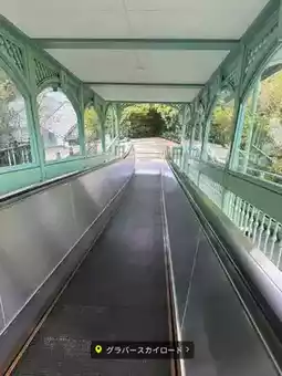 Glover Sky Road The Glover Sky Road, completed in 2002, is the first escalator in Japan to be positioned as a "road"! After a two-minute journey from the boarding point near Ishibashi, the end of the tram line, the blue sky and the scenery of the slopes spread out before you. It's a fun experience unique to Nagasaki, a city of slopes, where you can see different expressions depending on the height (free).