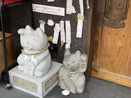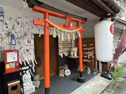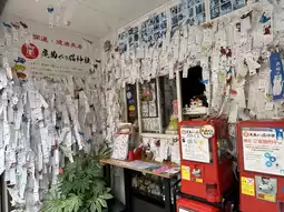 Fortune slips are posted all over the shrine in the corner of the building, and cat goods are sold at the shop. They also sell capsule toys of shrine goods.