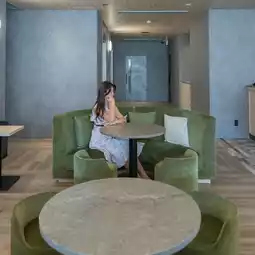The first floor features a stylish café, creating a chic atmosphere as soon as you enter the hotel.