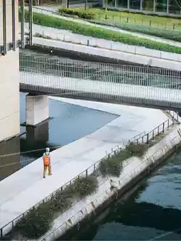 You can easily take minimal photos facing the canal of Nagasaki Prefectural Art Museum.